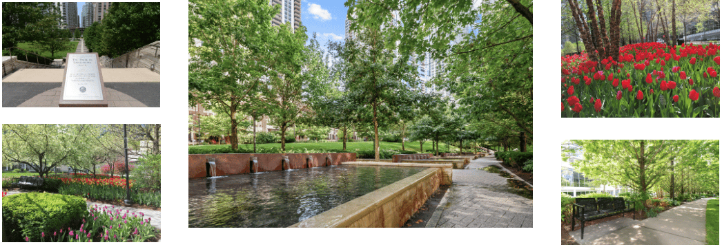 Upon moving into the first new high-rise in 2005, I witnessed the completion of this six-acre oasis in the heart of the city. Designed by renowned landscape architect James Burnett and Chicago's Site Design Group, this botanical haven was officially dedicated to the city of Chicago on July 16, 2005, by Mayor Daley and other city officials. Thanks to a maintenance agreement established through the Master Plan, funded by each building surrounding the park, it remains one of Chicago Park District's best-maintained parks.