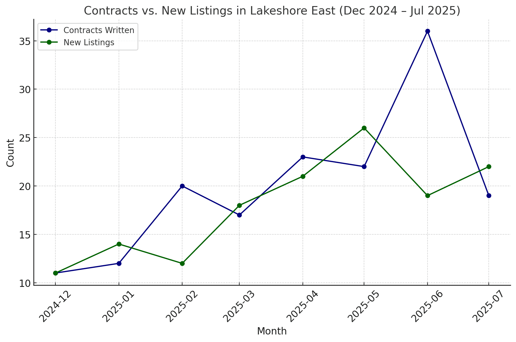 June 2025: Peak demand hit with 36 contracts written, even though just 19 new listings entered the market.
