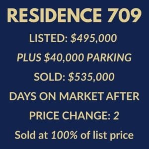 The sale of Residence 709 underscores what drives today’s buyers in Lakeshore East — they act on value, not negotiation games. Once we repositioned and presented the home at its best, early hesitation turned into a competitive, full-price sale.